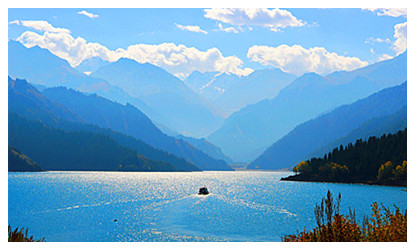 In the middle of Bogda Peak, 110 km east of Urumqi, nestles Heavenly Lake. Hteavenly Lake, a relic of the Quaternary Period Glacier and its surrounding geological relics, offers science lovers exploring opportunities