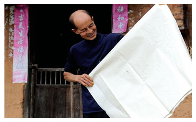 Huang Longgen, over 50 years old, is the owner of the “Gushan Paper Workshop”. Since the age of 17, he has inherited this ancient handmade papermaking technique from his father. It is already the fifth generation in his hands.